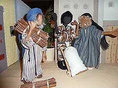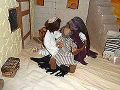 | Als Maria nach 3 Monaten zurück nach Nazaret kam, sah nicht nur Josef, dass sie schwanger war. Jede/r konnte es sehen... und manch eine/r machte sich darüber lustig, dass Josef sich das Kind eines anderen ‚unterschieben‘ ließ... | ![]() |