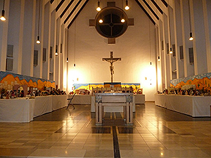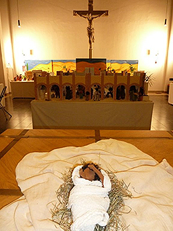 Das Jesuskind lag auf dem Altar und wie selbstverständlich wurde von hier aus der Blick des Betrachters auf das große Kreuz im großen Chorraum der Kirche gelenkt: