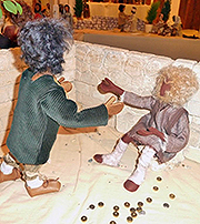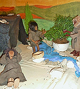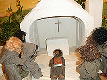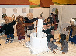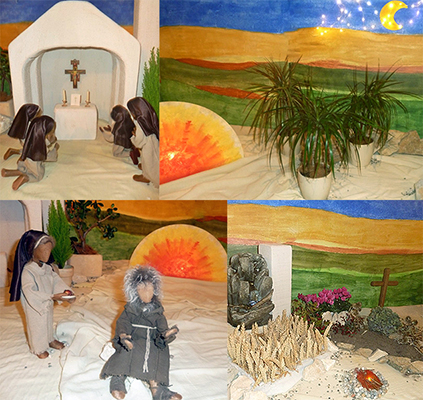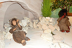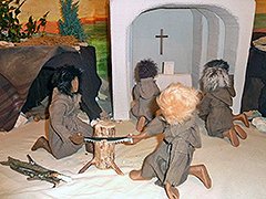 Franziskus suchte immer nach Möglichkeiten, die Frohe Botschaft anschaulich zu verkünden.Als er im Wald eine Höhle entdeckte, kam dem 41jährigen die Idee, das Weihnachtsevangelium bildlich darzustellen. Franziskus lud die Bewohner ein, ihre Familien und ihre Tiere zur Krippenfeier mitzubringen. Fackeln und Leuchten erhellten die Dunkelheit, als Bruder Leone dort die Heilige Messe feierte. Franziskus selbst las als Diakon das Evangelium vor und predigte. Der Frieden der Heiligen Nacht ruhte auf Mensch und Tier, denn Franziskus war sich bewusst: Die Menschwerdung Gottes betrifft nicht nur den Menschen, sondern die gesamte Schöpfung. Da die franziskanischen Brüder überall unterwegs waren, verbreitete sich der Brauch, an Weihnachten eine Krippe aufzustellen, über die ganze Welt. |
