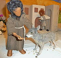 Er sprach zu dem Wolf: „Friede sei mit dir, Bruder Wolf! Ich bitte dich, sei doch gut zu allen, und greife niemanden mehr an! Auch die Menschen sollen dich nicht weiter verfolgen."Es geschah ein Wunder: Von diesem Zeitpunkt an war der Wolf gut zu allen, wurde zahm und ließ auch die Schafe in Ruhe. Der Wolf lebte noch zwei Jahre. Er wurde zutraulich und ließ sich von den Menschen füttern, bis er schließlich an Altersschwäche starb. |