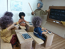 | Martin Luther ging in Mansfeld zur Schule und lernte dort Lesen, Schreiben, Rechnen, Singen und Latein. Auch die Lehrer machten den Kindern damals Angst. „Gott sieht all eure Sünden“, lehrten sie die Kinder. „Ihr müsst brav sein, sonst müsst ihr im Höllenfeuer büßen.“ Als Martin lesen und schreiben gelernt hatte, brachte ihn sein Vater nach Magdeburg in die Klosterschule. Bei den Mönchen gefiel es Martin gut. Aber schon bald schickte ihn der Vater nach Eisenach. |