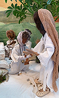 Eines Tages kam in Kafarnaum ein Leprakranker zu Jesus, kniete vor ihm nieder und bat: „Herr, wenn du willst, dann kannst du mich bestimmt heilen!“Voller Mitleid streckte Jesus die Hand aus und berührte ihn: „Ja, ich will es! Von nun an bist du rein.“ Da sah der Mann, dass seine Beine und Arme wieder ganz gesund waren. Seine Haut war glatt und ohne Geschwüre. „Nun mach dich auf den Weg“, forderte Jesus ihn auf. „Geh zu einem Priester; er wird Opfer darbringen und dich für geheilt erklären. Außer ihm darfst du aber niemandem erzählen, was geschehen ist.“ Der Leprakranke war aber so glücklich über seine Gesundung, dass er nicht anders konnte, als allen Menschen, denen er unterwegs begegnete, von dem Wunder zu erzählen, das er erlebt hatte. (Mt 8,40-45; Mk 1,40-45; Lk 5,12-14) |