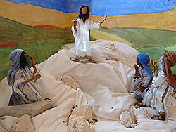 Immer größere Menschenmengen strömten herbei, um Jesus predigen zu hören. Eines Tages stieg er auf eine kleine Anhöhe, damit man ihn besser verstand,