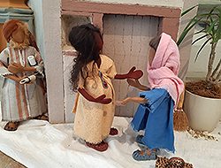 Das Lukasevangelium berichtet, dass die junge Frau Nazareth verließ und zu ihrer Kusine Elisabet ins Bergland von Judäa ging.Sie ging in das Haus des Zacharias und begrüßte Elisabet.