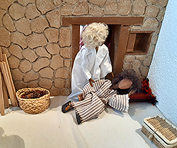 Zu Hause sprach Josef zu Maria: „Maria, ich habe dich aus dem Tempel des Herrn empfangen. Ich lasse dich nun in meinem Haus.
