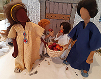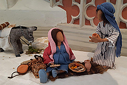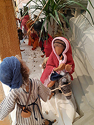 | Mehrere Tage lang waren sie unterwegs. Der Weg war beschwerlich, besonders für Maria. Sie war hochschwanger, bis zur Geburt ihres Kindes waren es nur noch wenige Tage. | |