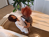 Als Maria drei Jahre alt war brachten ihre Eltern sie in den Tempel - so wie sie es versprochen hatten.Der Priester setzte Maria auf die dritte Stufe des Altars… und sie tanzte mit ihren kleinen Füßen. Anna und Joachim wunderten sich, dass ihre kleine Tochter ihnen nicht nachschaute. Maria wurde im Tempel ‚gehegt wie eine Taube'.