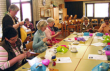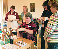 | Jeder Gestaltungskurs beginnt mit dem Nähen des Körpers, dem Wickeln von Armen und Beinen, dem Modellieren der Köpfe - damit sind die ersten Stunden am Freitag gut ausgefüllt. | ![]()  |